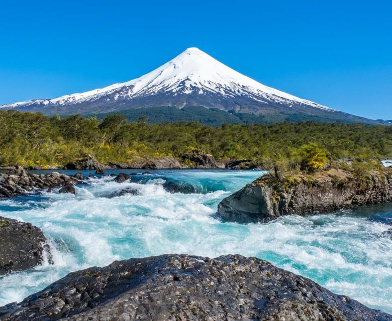 Volcano Osorno & Petrohue Falls: Explore Chile’s Lake District, visiting the stunning Petrohue Falls and enjoying panoramic views of Osorno Volcano and the scenic Petrohue Valley from La Burbuja.